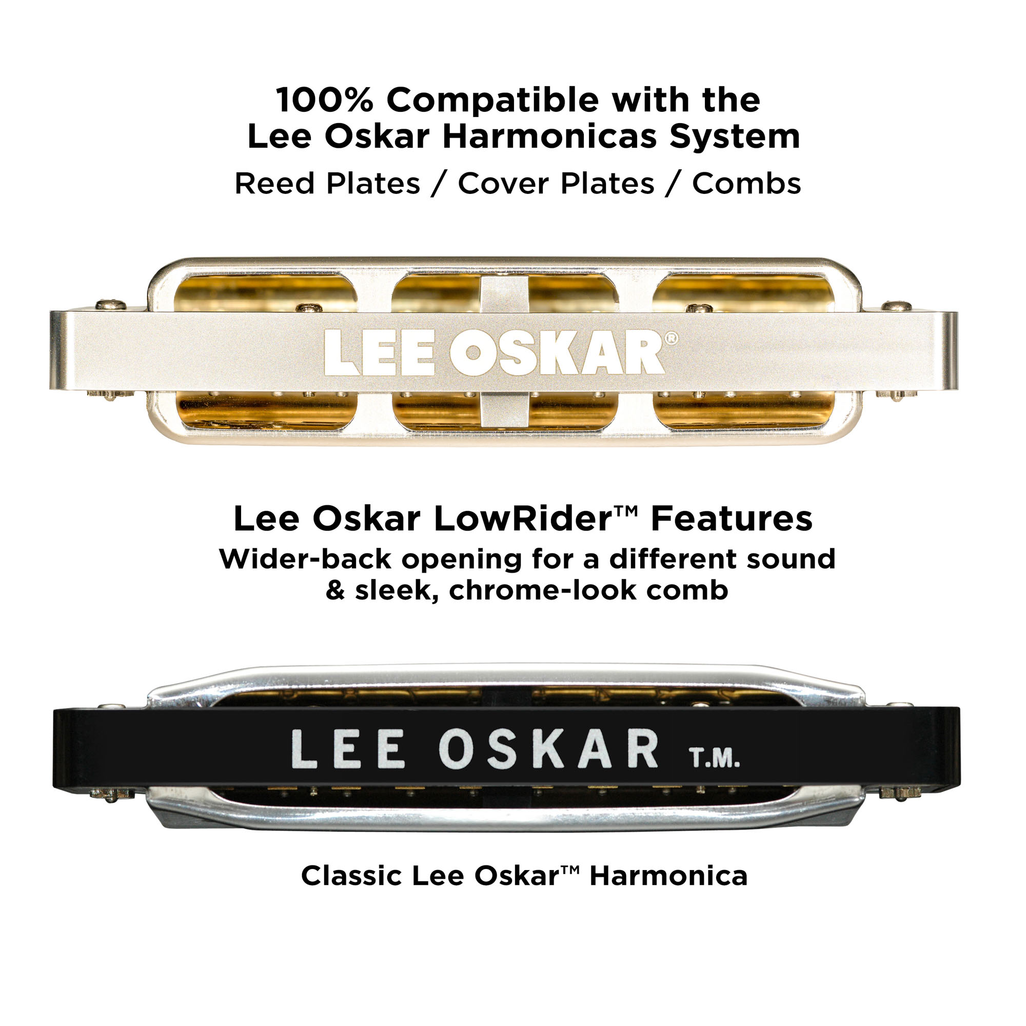 The Lee Oskar Low Rider Harmonica showcases wider rear cover plate vents for enhanced airflow, a distinctive chrome comb, and sleek, modern styling delivering a smooth, solid feel in hand. Current Lee Oskar Harmonica players will appreciate the LowRider’s full compatibility with existing Lee Oskar Harmonica System components, while new players will find it a welcoming introduction to the quality and craftsmanship associated with the Lee Oskar name for over 40 years.