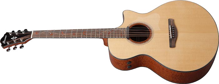 Att få in elektronik, preamps och mikrofoner i akustiska instrument är alltid en kompromiss med det akustiska ljudet i instrumentet. På AE modellen har man gjort denna kompromiss så liten som möjligt med att använda en mycket kompakt aktiv preamp och en ny designad magnetisk pickup.