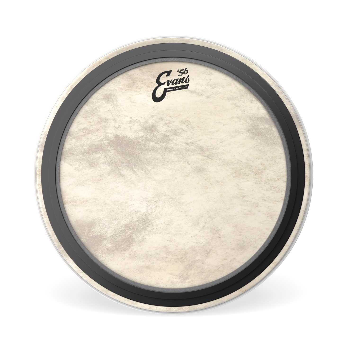 Evans Level 360 form ser till att skinnet får maximal kontakt med stommen även i lägre stämlägen. Den snygga Evans loggan påminner om tiden när Evans presenterade det första bastrumskinnet av syntetmaterial 1956.
