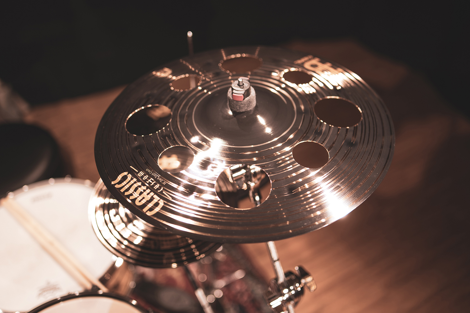 16" Trash Crash ( Spännade 16" Trash Crash med hål , kort och trashigt sound) 16" Dark Trash Crash är tillverkad med en speciell värmebehandling som tar vara på B10 legeringens breda ljudspektrum och på köpet får cymbalerna ett läckert mörkt utseende. Dark crasharna har snabb attack, är ljusa med tydligt skimmer och den extra hamringen ger ett fylligare bottenregister. Dark crasharna passar i flera genrer som Rock, Metal, Pop, Fusion...