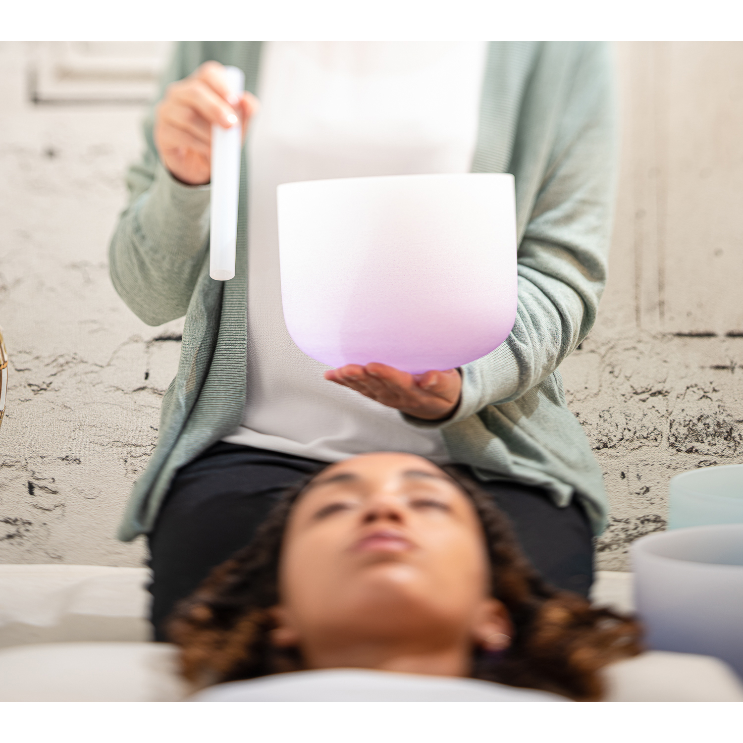 Vitfrostade Crystal Singing Bowls från Meinl Sonic Energy är gjorda av Quartz/kvarts, skapar en mycket trevlig aura med sitt ljud och design. Dess långvariga, sfäriska ton sprids när man tappar på singing Bowl eller gnuggas försiktigt så att energin kan kännas i hela dess omgiving. Alla Crystal Singing Bowls har en silikonring som bas för att undvika eventuell påverkan och för att skapa bästa möjliga resonans.
