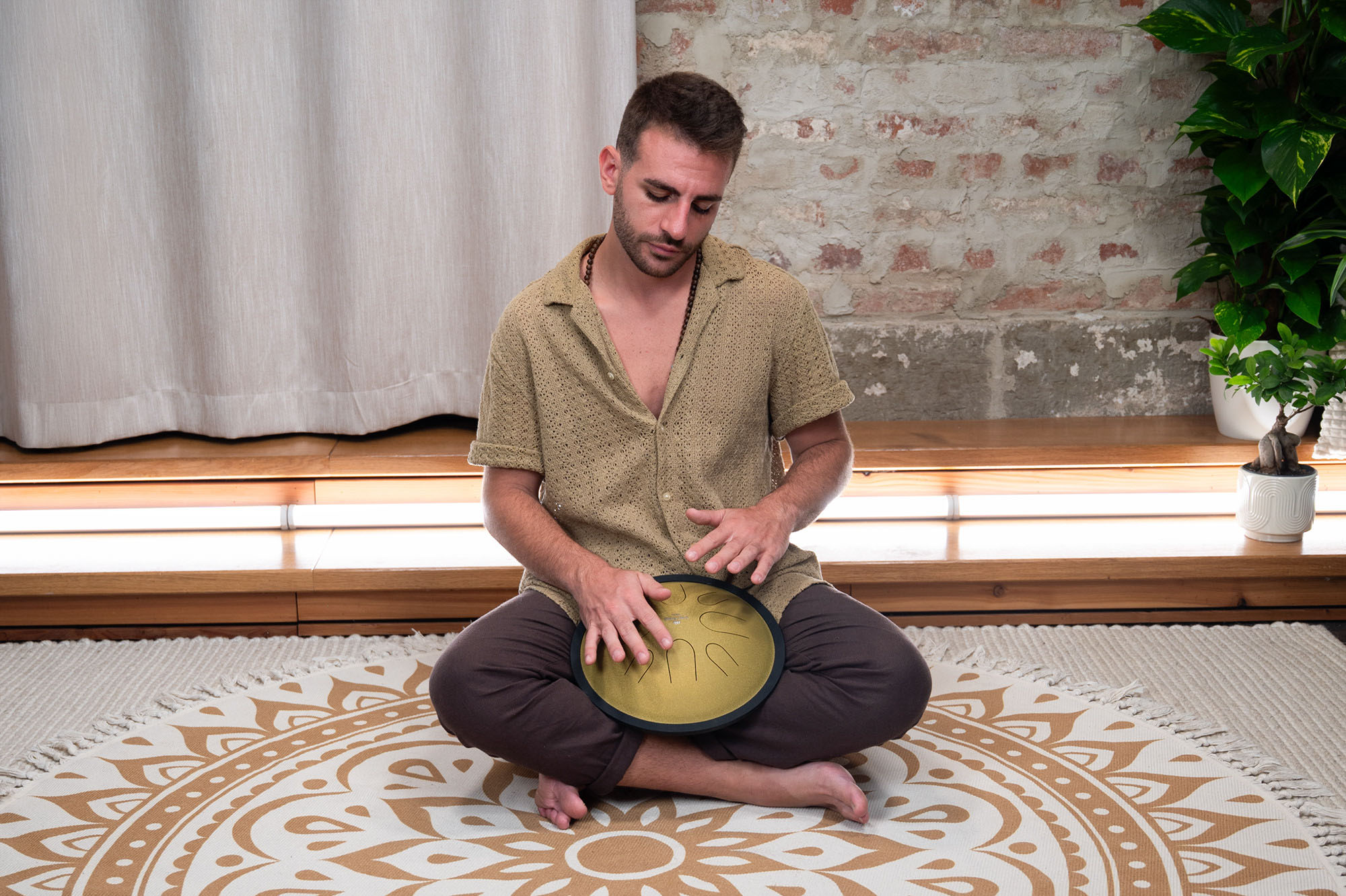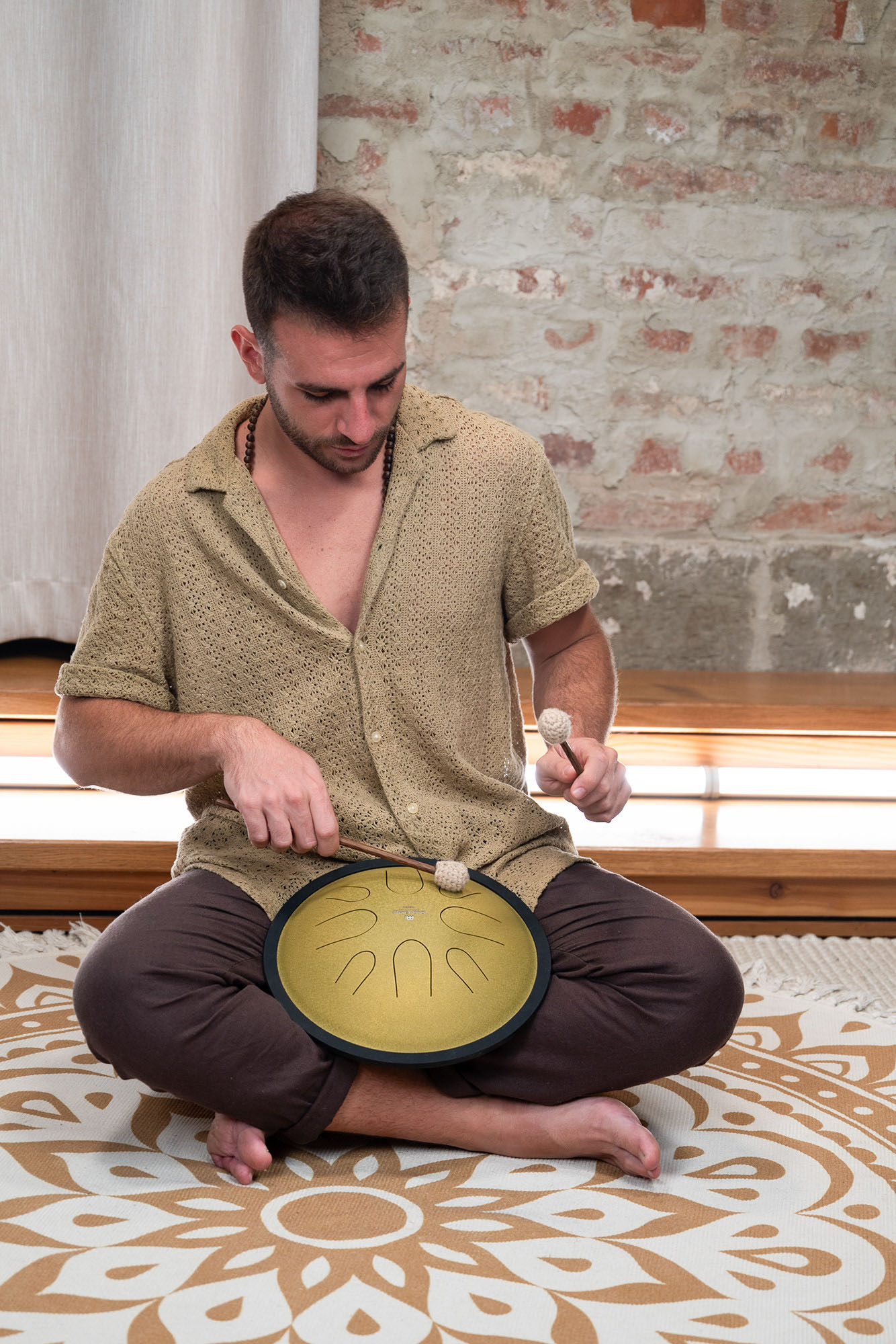 Tack vare sin kompakta storlek kan den placeras bekvämt i knät eller på vilken plan yta som helst, vilket gör den till en idealisk följeslagare för resor, meditation eller avslappnade jamsessioner.