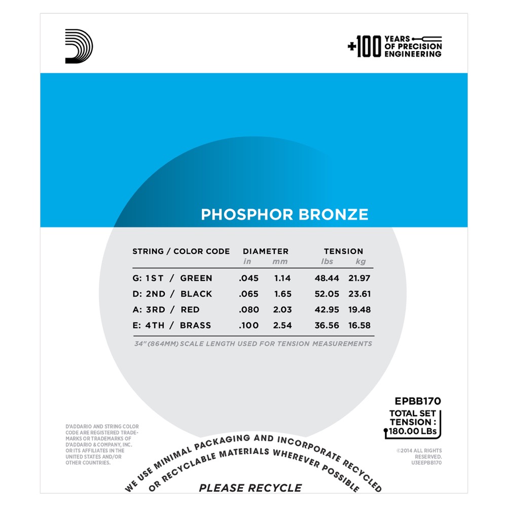D’Addarios akustiske basstrenge er spundet af samme Phoshor Bronze legering som deres populære guitarstrenge.