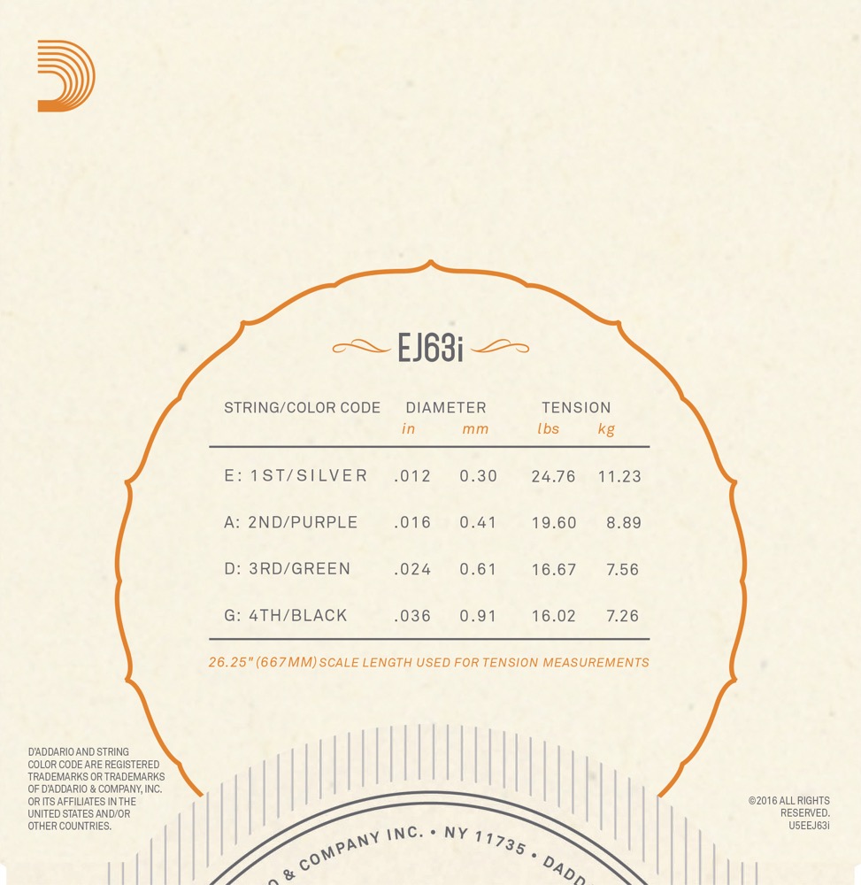 D'Addario EJ63i banjo sets are designed for the Irish Tenor Banjo, typically tuned in fifths and played with a "plectrum" picking style.