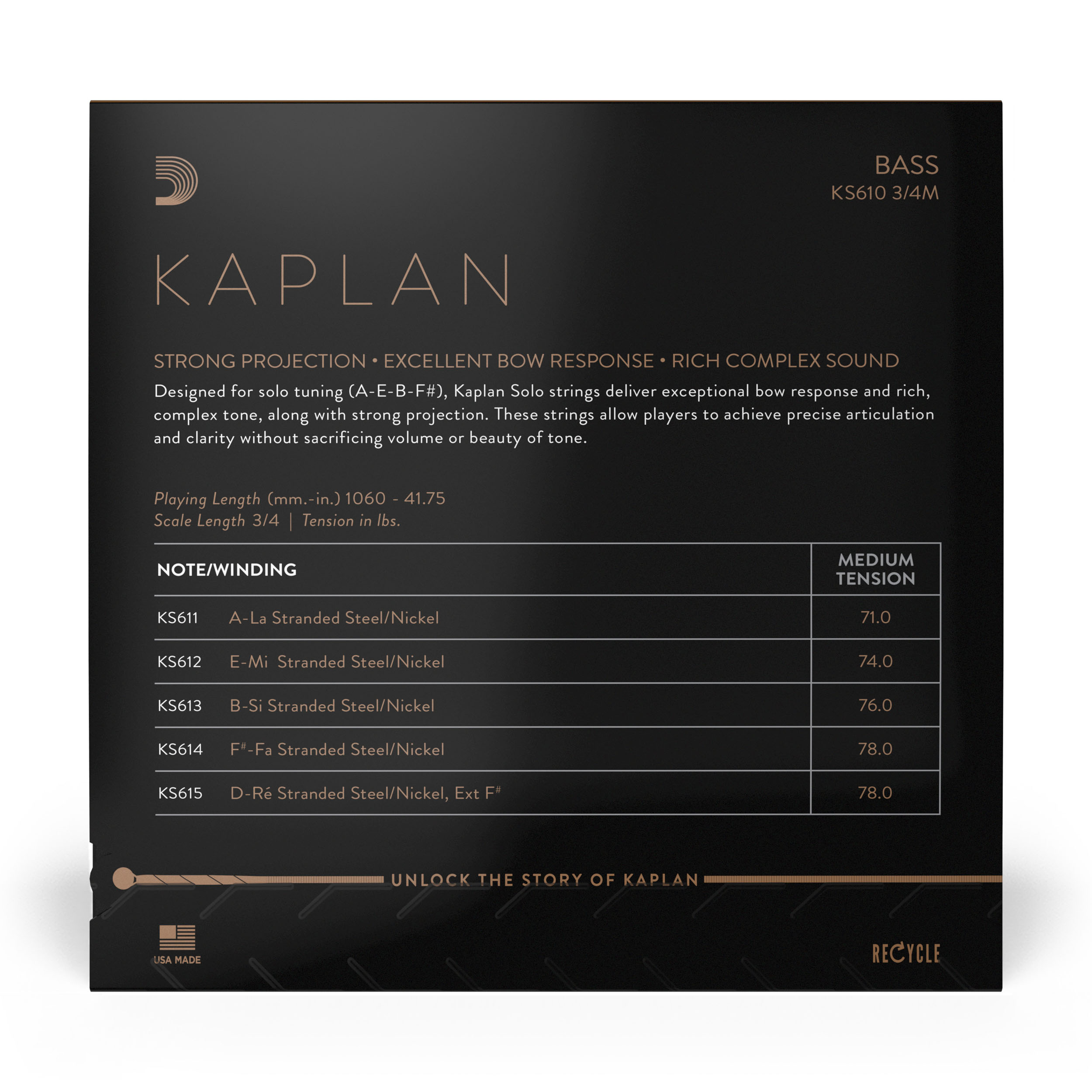 KS610 3/4M. Kaplan Solo bas set. Medium Tension.