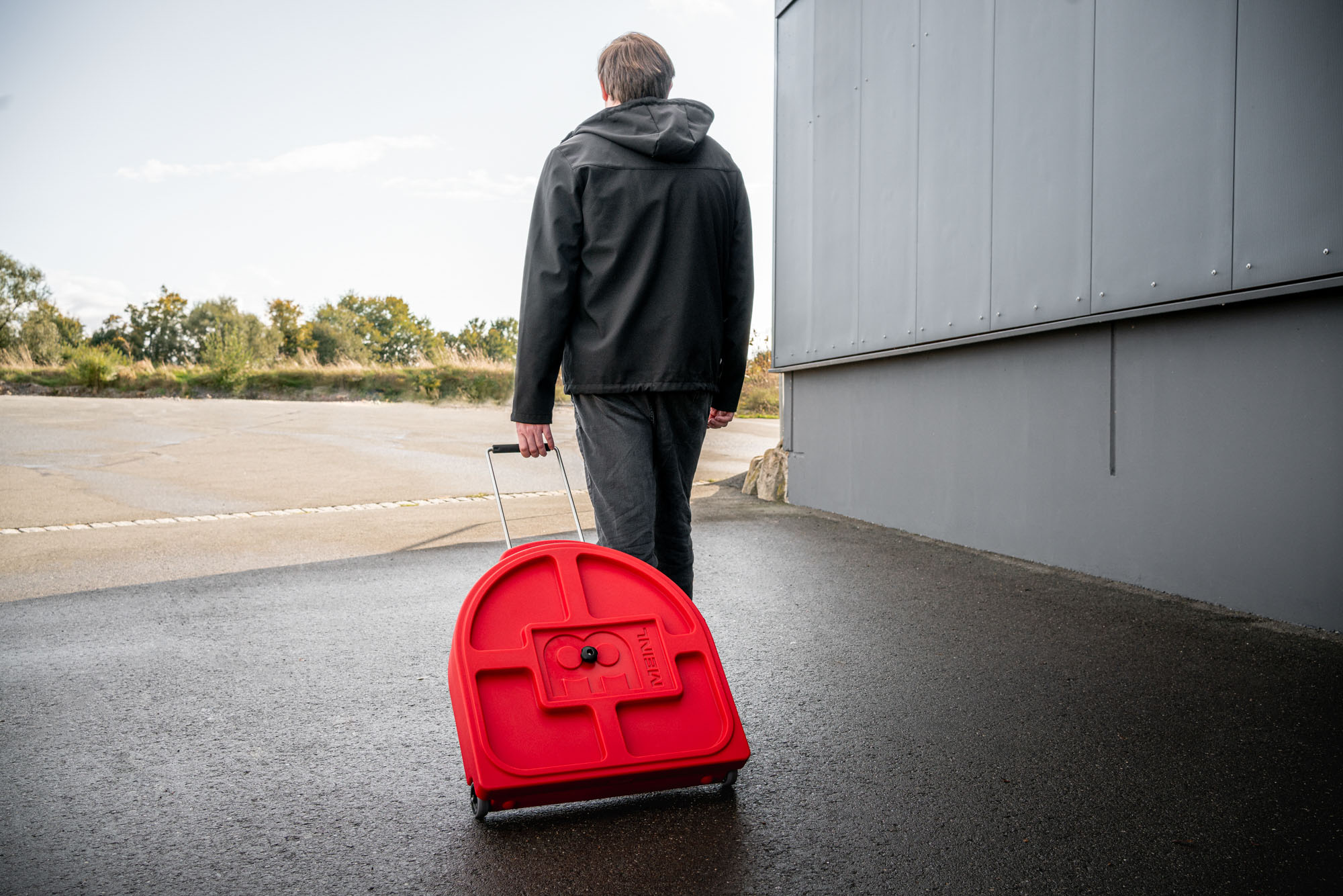 • Infällbart handtag och kraftiga hjul.