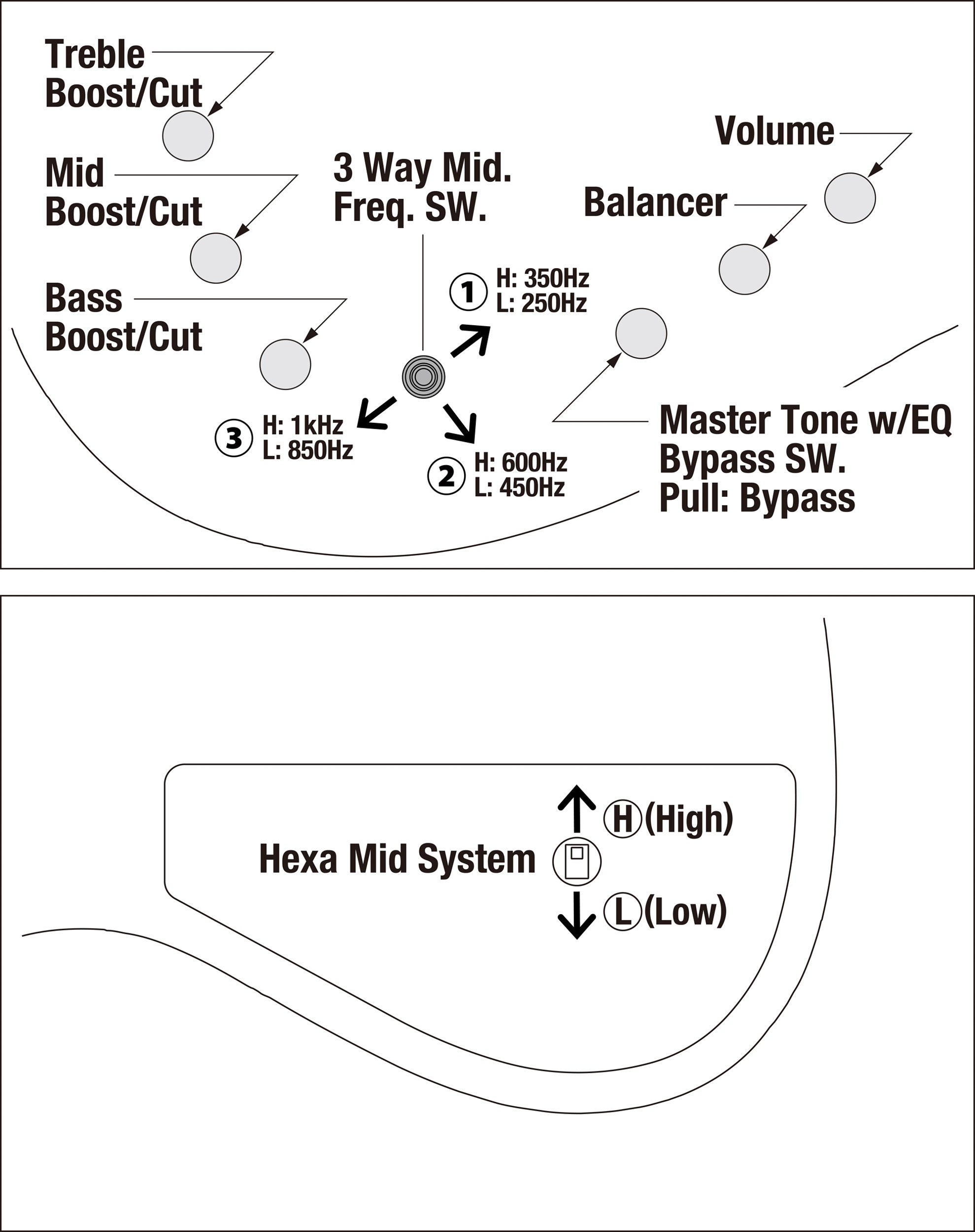 • 3-way Mid frequency switch w/Hexa Mid system.
