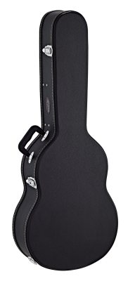 Etui før klassisk nylon gitarr. Klætt i svart vinyl och med 15mm plyschstoppning. Chrome hardware.