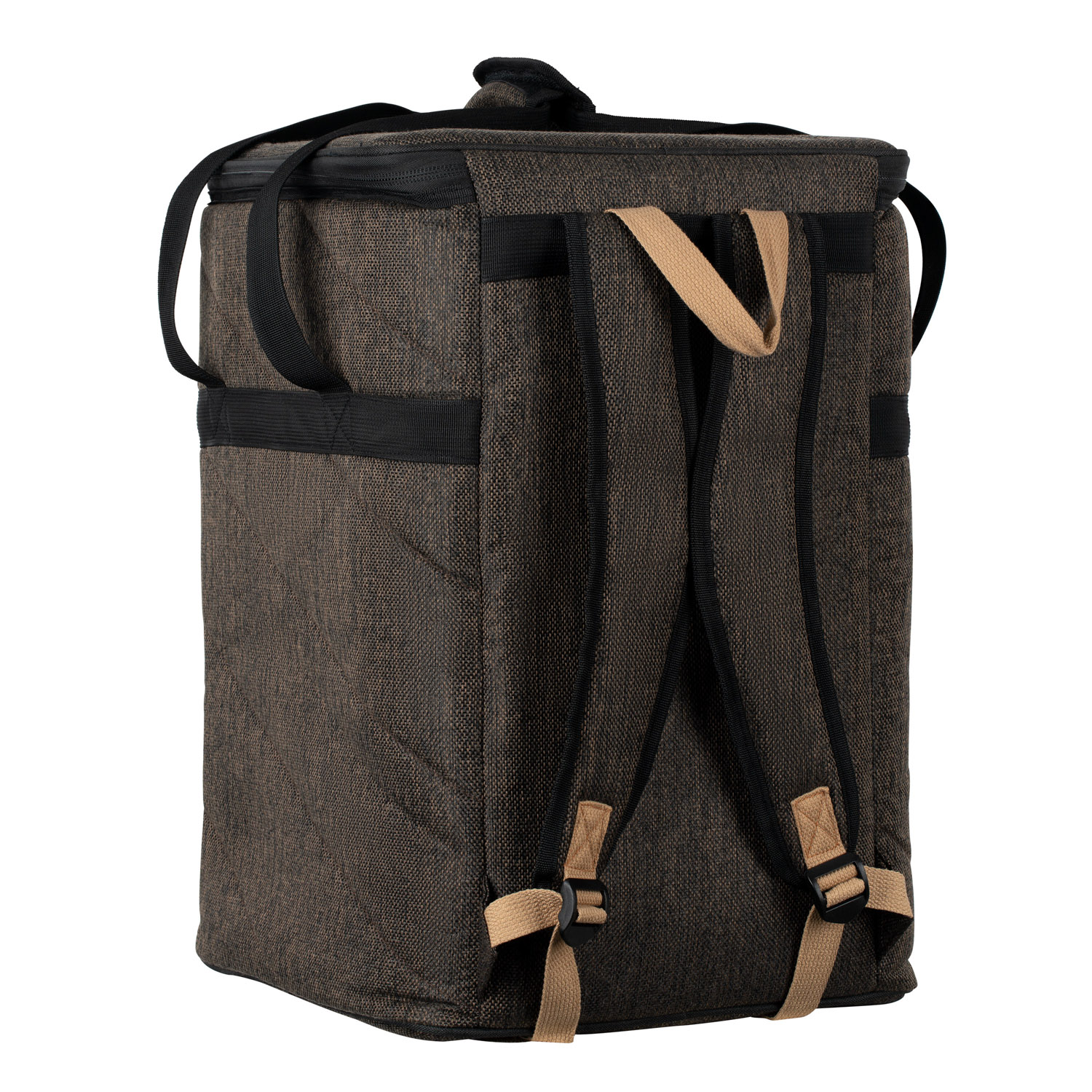 Ortega Premium Cajon bagar har en yta av canvas/bomull och ett inlägg i äkta mockaläder. Den 10 mm mjuka skumstoppningen skyddar ditt instrument säkert från stötar och skador. Bagen är utrustad med ett bärhandtag och ryggsäcksremmar, så du kan ta med dig instrumentet vart du än går.