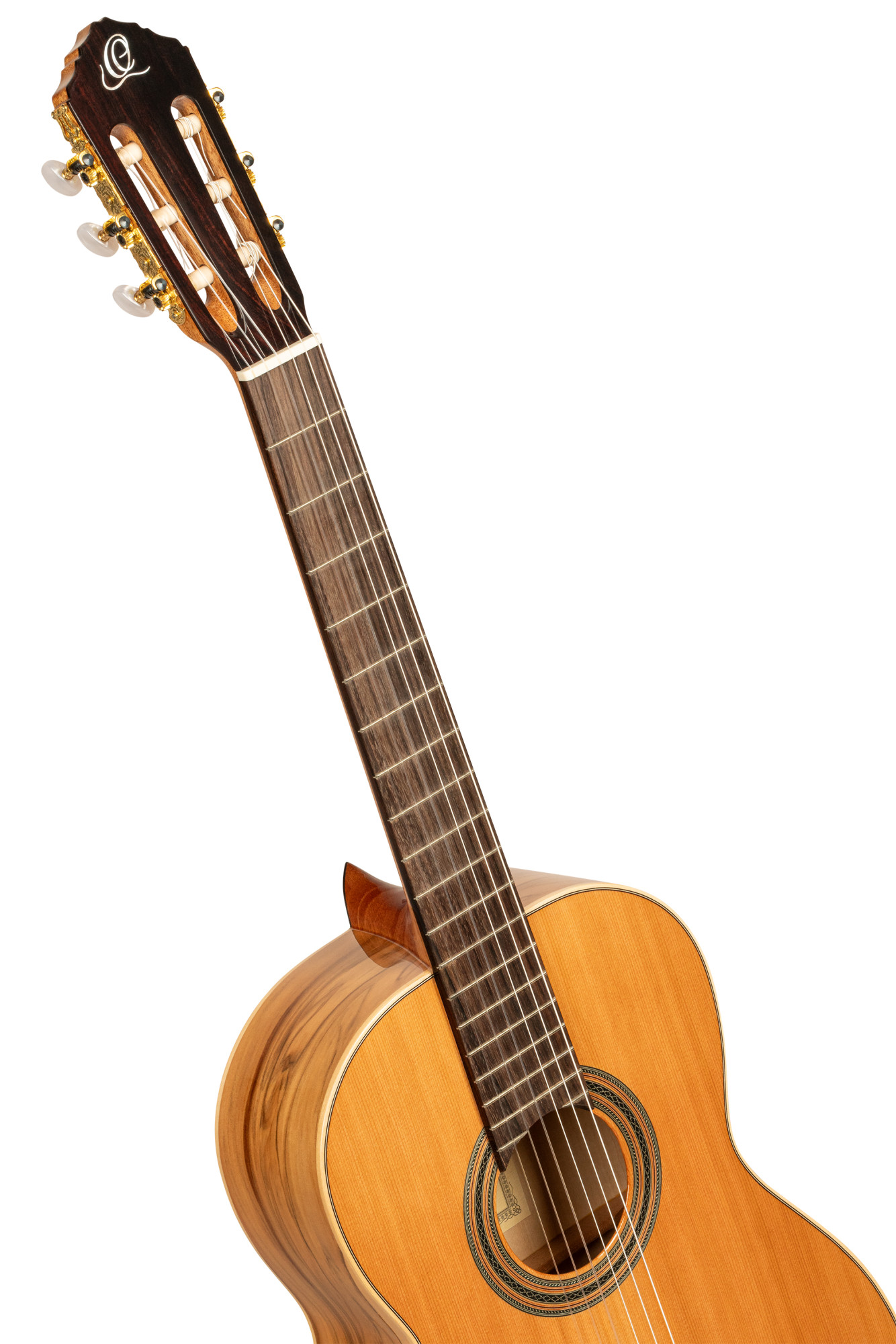 Ortega klassiska gitarrer kombinerar traditionell spansk design med modern gitarrteknologi. I det stora modellprogrammet erbjuds modeller i flera storlekar, halsbredder, träslag, finishar och vissa med pickup. Samtliga levereras med en Deluxe gigbag eller etui.