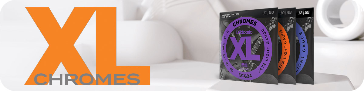 XL Chromes are our warmest, mellowest electric guitar strings. Beloved by jazz guitarists, as well as blues legends like Gary Clark Jr., these flat wound strings provide the smoothest feel and warmest tone, while allowing movement across the fretboard with no finger noise. Made with a high carbon steel core, Chromes’ stainless steel flattened ribbon wire is expertly wound onto a series of interlocking under-windings, then precisely polished for unparalleled smoothness and a sound which blends beautifully into any mix.