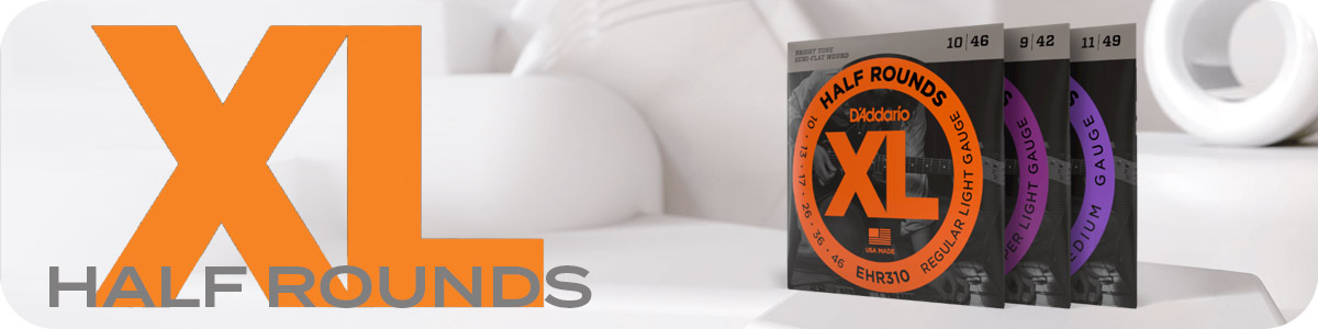 Coined the “third type of string,” XL Half Rounds are an innovative combination of round wound and flat wound strings. Half Rounds electric guitar strings have a smoother feel than round wound strings, but a fuller tone than strings which are flat wound. Made with a high carbon steel core and stainless steel wrap wire, they’re finished with a precision grinding process to provide a smooth feel and reduced finger noise, with tone that's comparable to round wound strings.