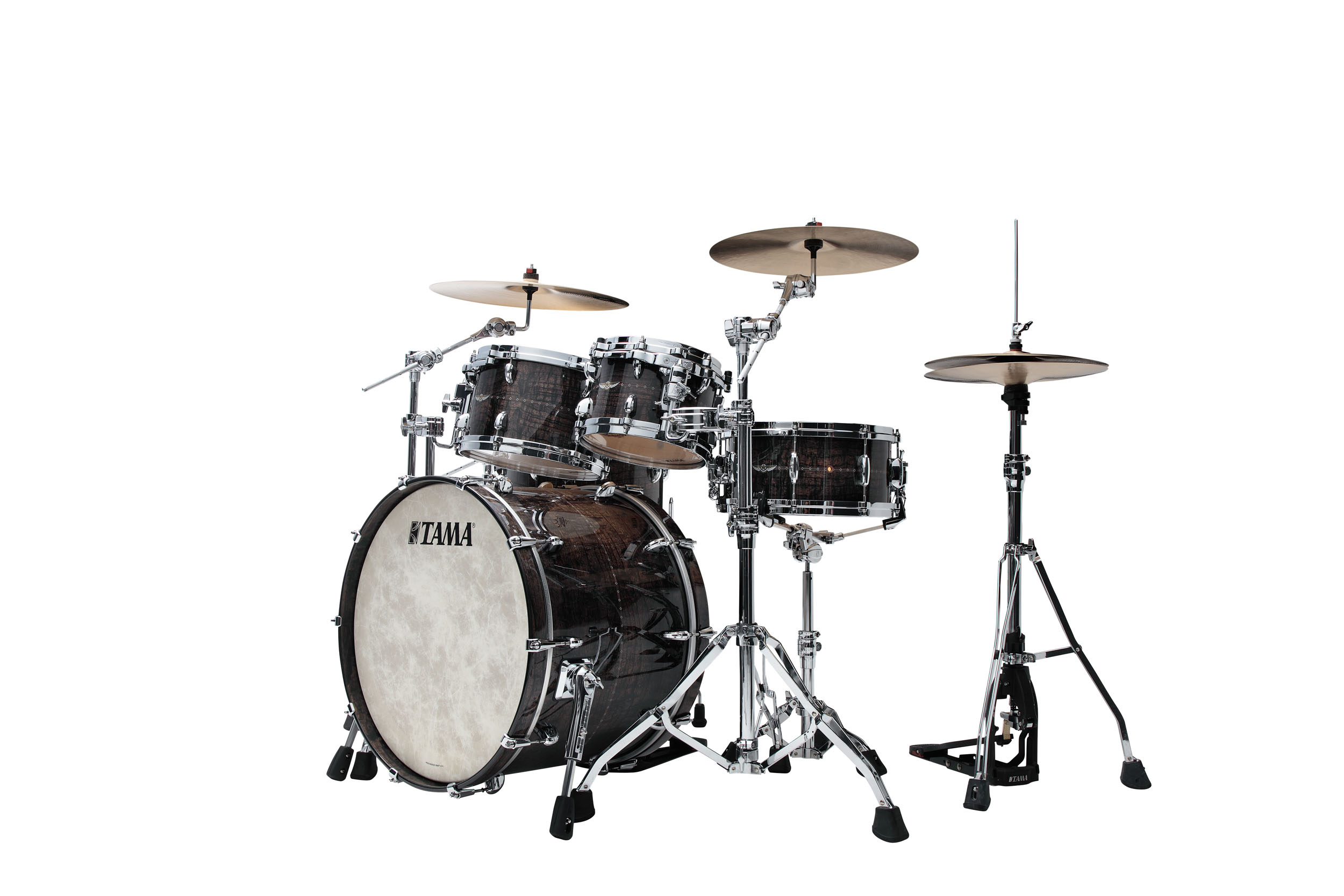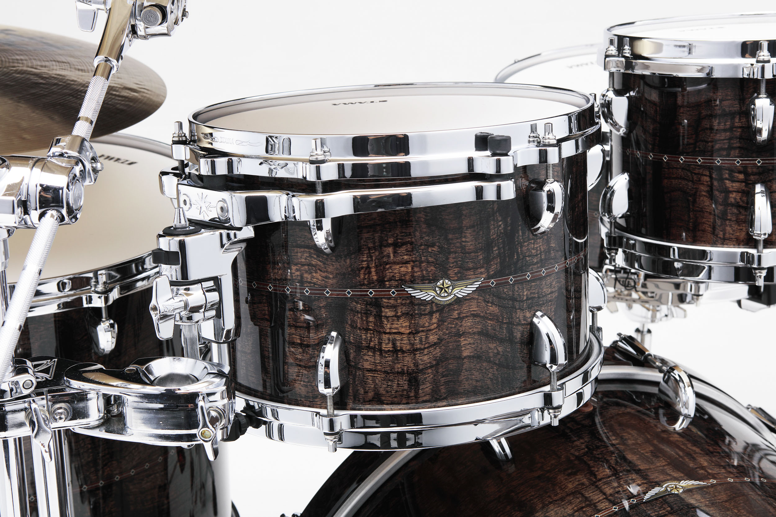 Star Maple i matchande storlekar och finish med de ljuvliga lönnstommar med sin perfekta blandning av Vintage/Modern. De 5mm tunna stommarna är byggda kring ett 2 mm solid kärna inbäddad av 2 tunna lönnlaminat på var sida. Tama har därigenom kombinerat rundheten och fylligheten från de solida stommarna med den moderna laminatstommens stabilitet. Insidan av stommen är oljad och den avrundade motfasningen på 3,5mm gör att skinnet får optimal kontakt mot stommen. Detta gör också att trumman blir lättstämd med otroligt bred sweetspot. Star låter lika bra högt som lågt stämd och spelkänslan är underbar med dynamik som svarar på minsta impuls.