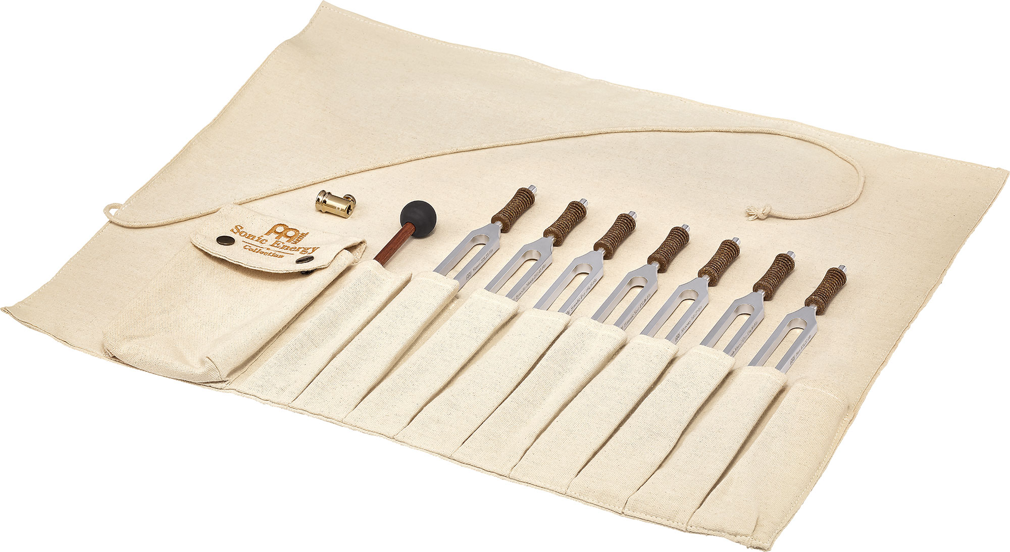 Detta chakraset har 7st Meinl Sonic Energy Planetary Therapy Tuning Forks, som var och en motsvarar ett specifikt chakra. Tillverkade i Tyskland baserat på Hans Cousto kosmiska oktavberäkningar. Varje stämgaffel är exakt stämd till frekvensen för sin respektive himlakropp för att uppnå en terapeutisk effekt. Terapistämgafflarna är större och tyngre än standardstämgafflarna, vilket möjliggör längre resonans och färre slag under behandling. Dessa stämgafflar är tillverkade av högkvalitativt nickelpläterat stål med en matt finish och kombinerar hållbarhet med ett raffinerat utseende. Setet innehåller också en Tuning Fork Vibration Foot för exakt applicering och en tuning Fork Rollup Bag i bomull för enkel förvaring och transport.