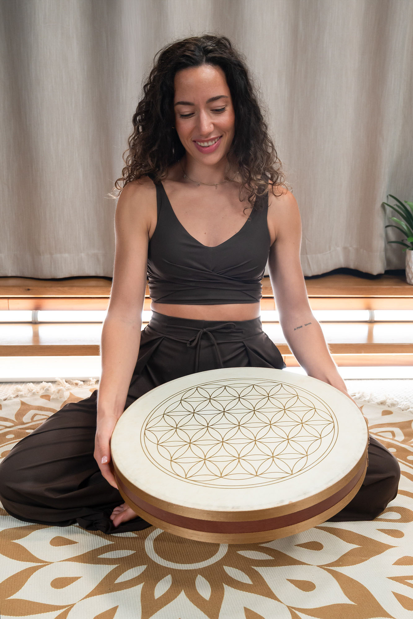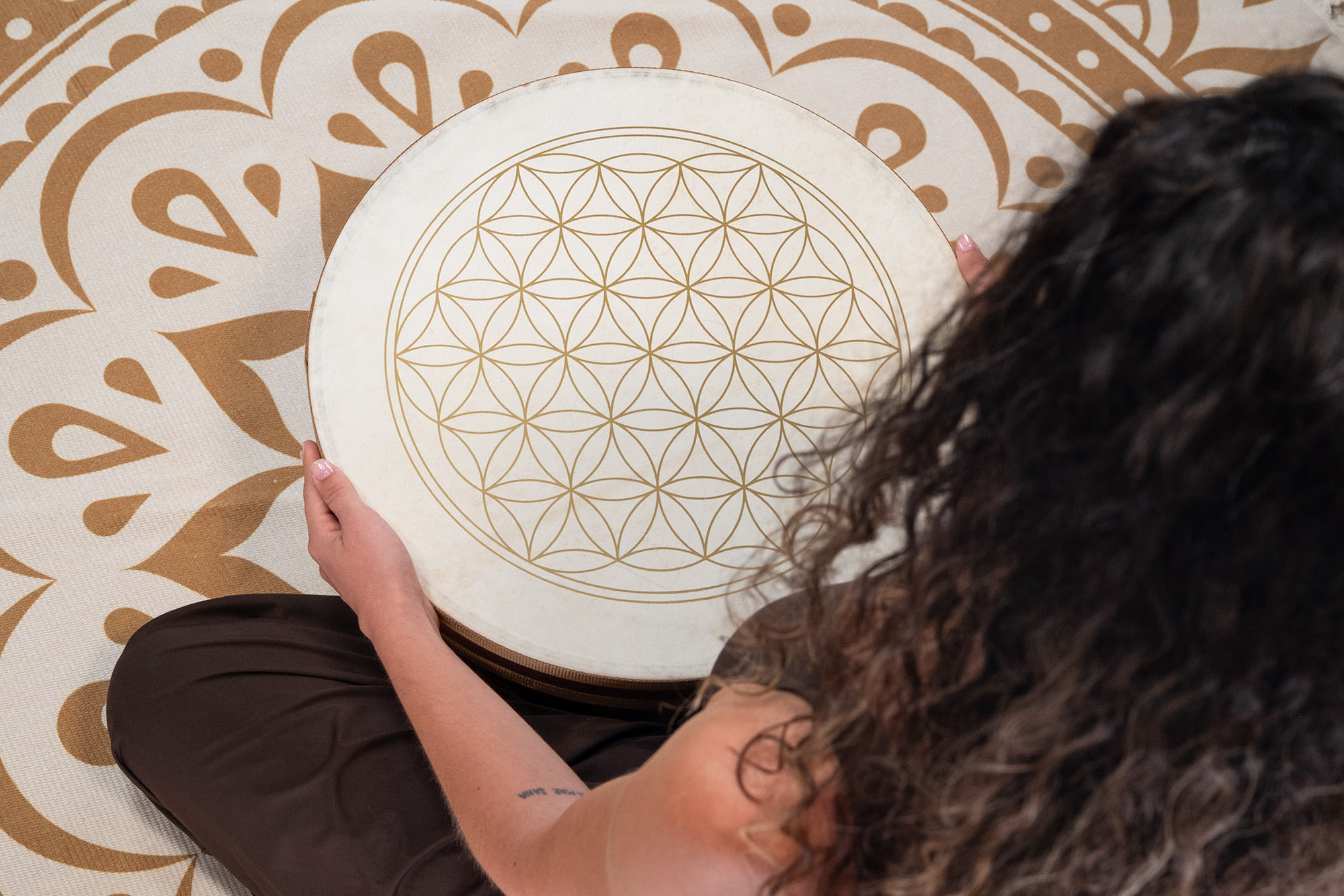 Flower of Life Wave Drums är tillverkade med två naturliga getskinn och har en speciell mjuk fyllning inuti, vilket skapar ett särskilt mjukt vågljud. Dekorerade med den symboliska Livets blomma bär de också på en stark visuell och andlig närvaro.