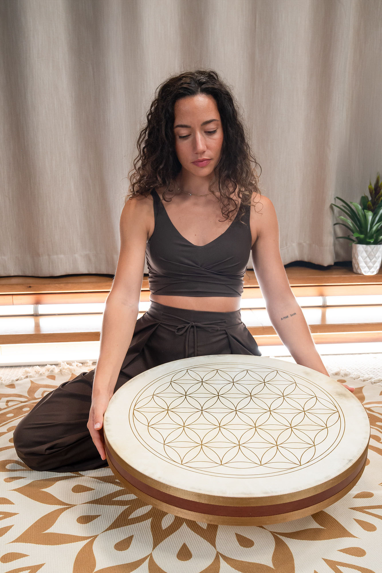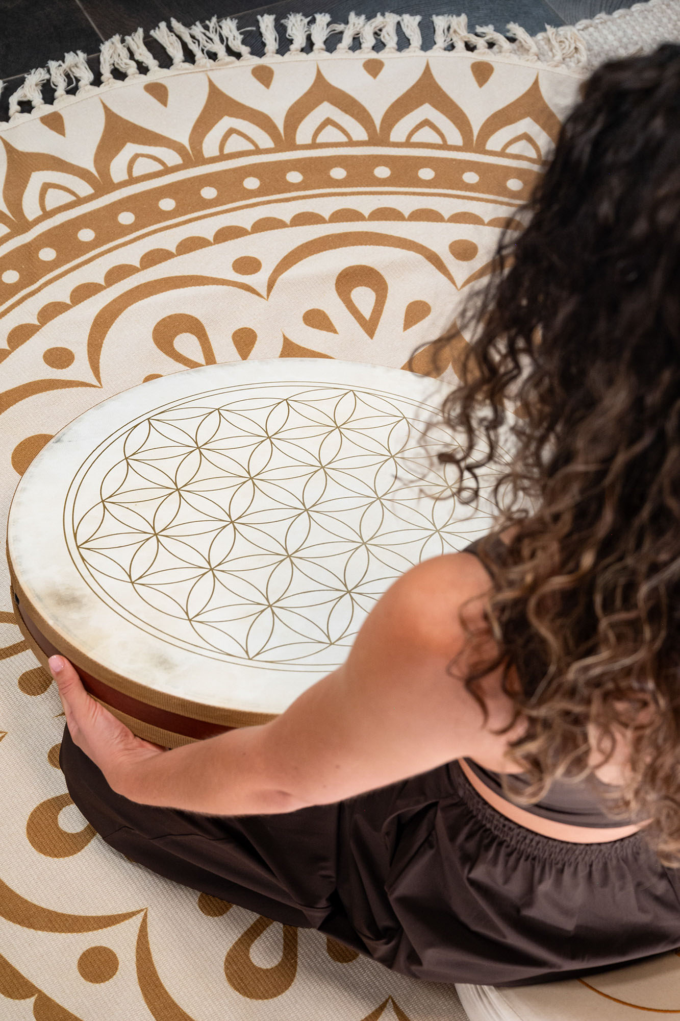 Detta lugnande ljud gör wave drum till ett mångsidigt instrument för meditation, ljudterapi eller för att lägga atmosfäriska lager till musikframträdanden. Flower of Life Wave Drums är byggda med två naturliga getskinnshuvuden och har en speciell mjuk fyllning inuti, vilket skapar ett särskilt mjukt vågljud. Dekorerade med den symboliska Livets blomma bär de också på en stark visuell och andlig närvaro.