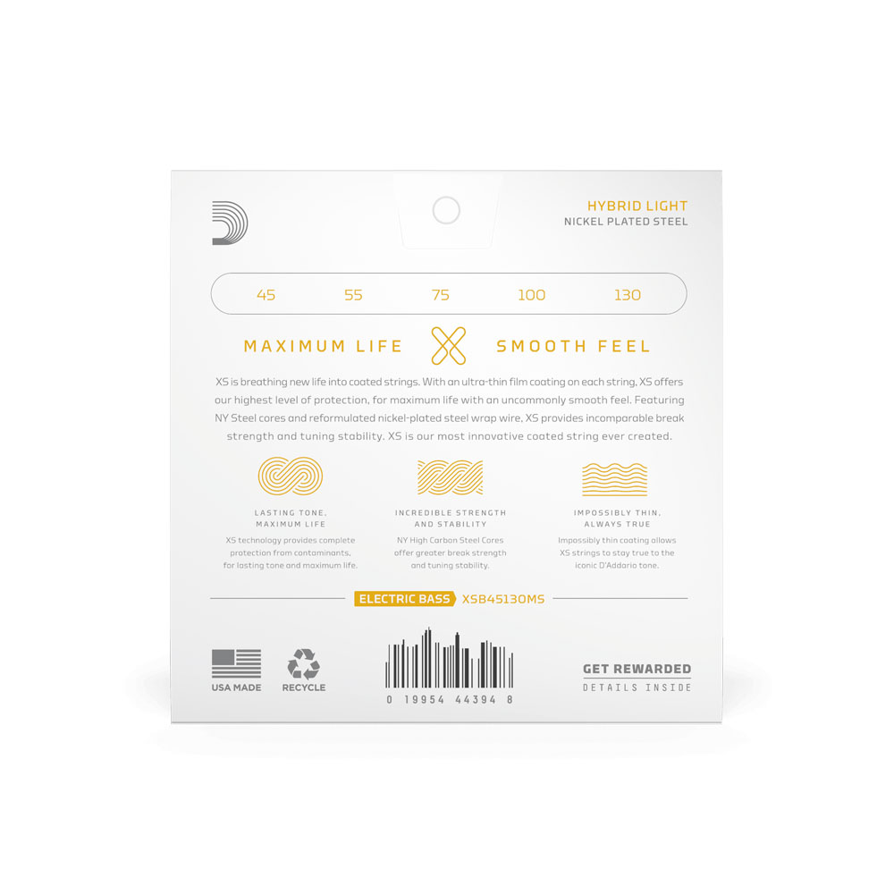 XSB45130MS. D'Addario Strängset Elbas, Coated Nickel Steel 45-130, Hybrid Light 5-str, Multiscale.